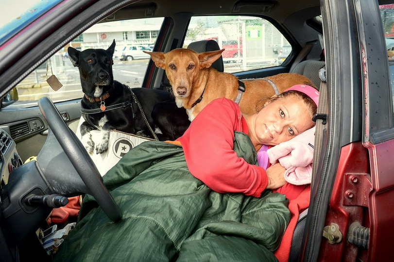 Взимку вона жила в своєму автомобілі на парковці, ридаючи ночами, в той час як собаки втішали свою господиню, втупившись у неї своїми носами.