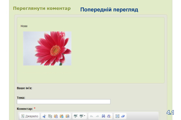 4. Внизу сторінки натискаєте «Попередній перегляд» (4.1), якщо хочете продивитись, який вигляд матиме Ваше повідомлення. Якщо Вас все задовольняє, натискаєте «Зберегти» (4.2).