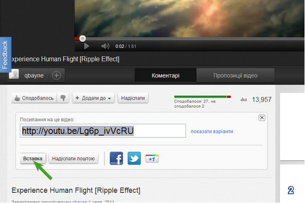 За приклад розглянемо процес додавання до повідомлення відео знайденого або розміщеного Вами на ]]>www.youtube.com:]]>